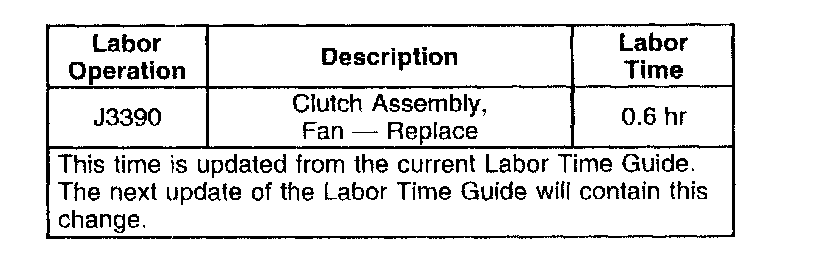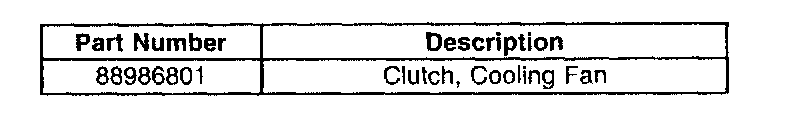A new cooling fan clutch, P/N 88986801, is available to correct this condition. Replace the cooling fan clutch following the service procedure in the Engine Cooling sub-section of the Service Manual.