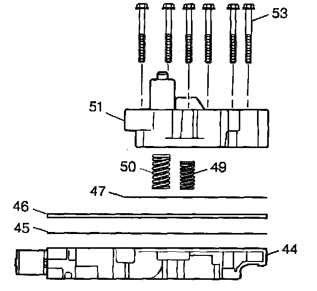 7. Remove the control valve assembly to spacer plate gasket (45) from the spacer plate (46).