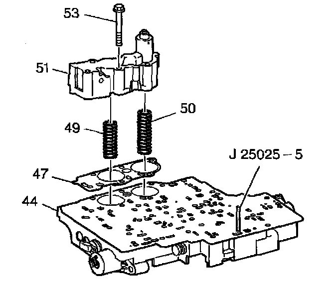 1. Install the J 25025 into the control valve body bolt hole where the manual shaft detent roller and spring assembly is mounted.