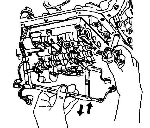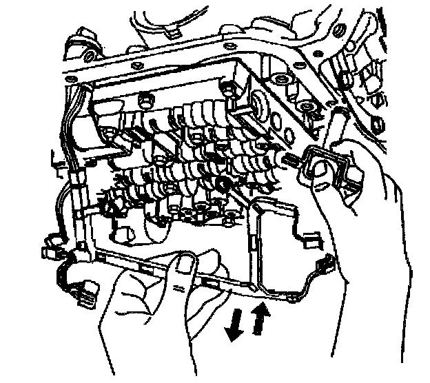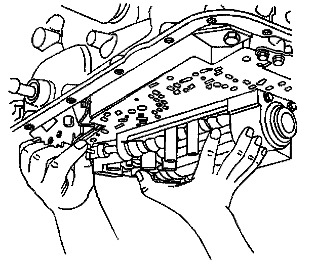 Important: Keep the control valve body level when lowering it from the vehicle. This will prevent the loss of checkballs located in the control valve body passages.