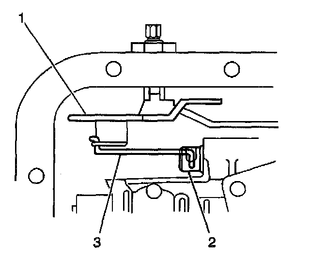 3. Verify that the manual valve link (3) is installed properly to the inside detent lever (1) and the manual valve (2).