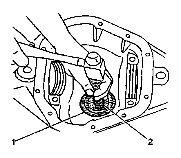 1. Install the outer pinion bearing cup using the J22306 (2) and the J8092 (1).