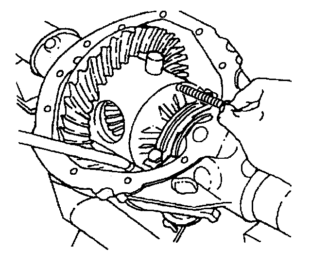 18. Place the differential case, with the bearing cups installed, into the axle housing. Support the case in order to keep the case from falling out of the axle housing.