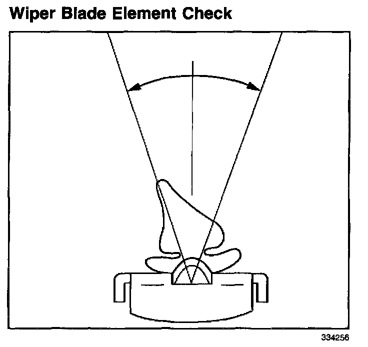 3. Replace the wiper blade element if the rubber element which contacts the glass is not on the centerline of the blade +/-15 degrees. Refer to Wiper Blade Element Replacement