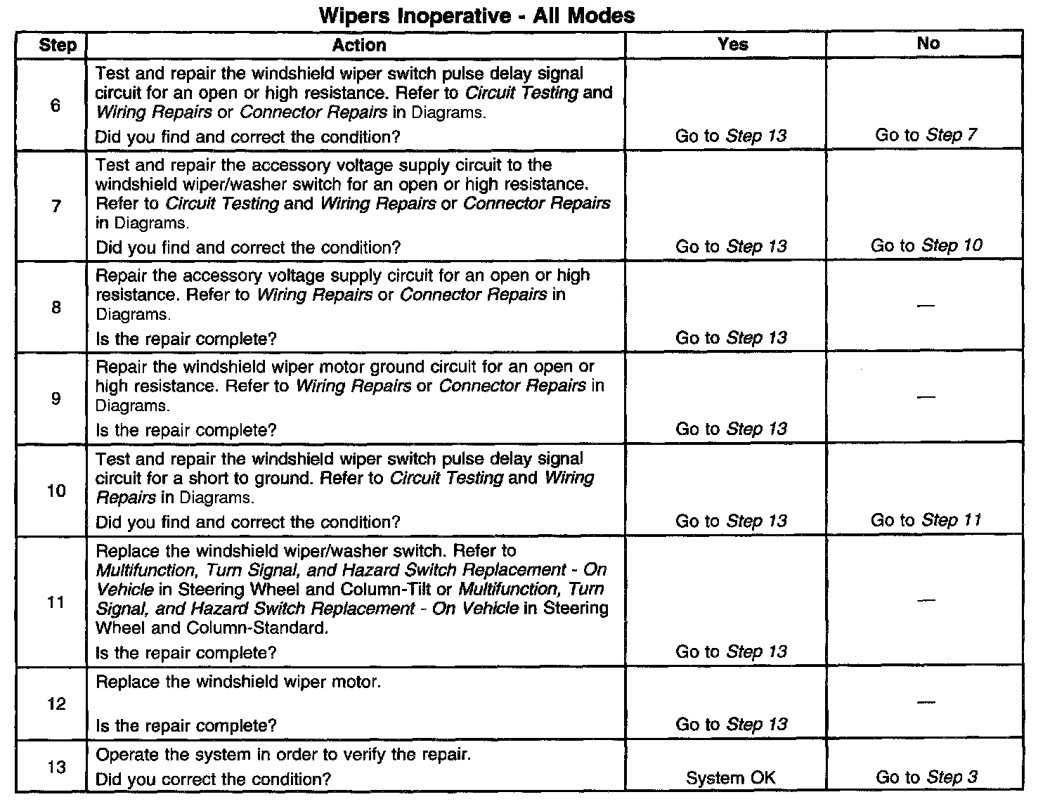 Wipers Inoperative - All Modes