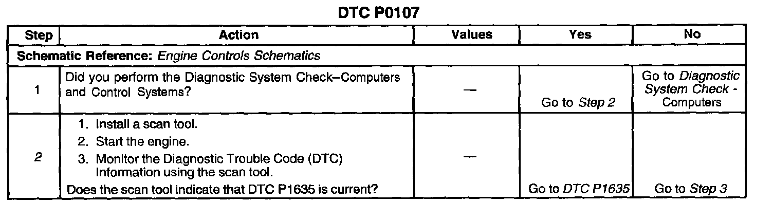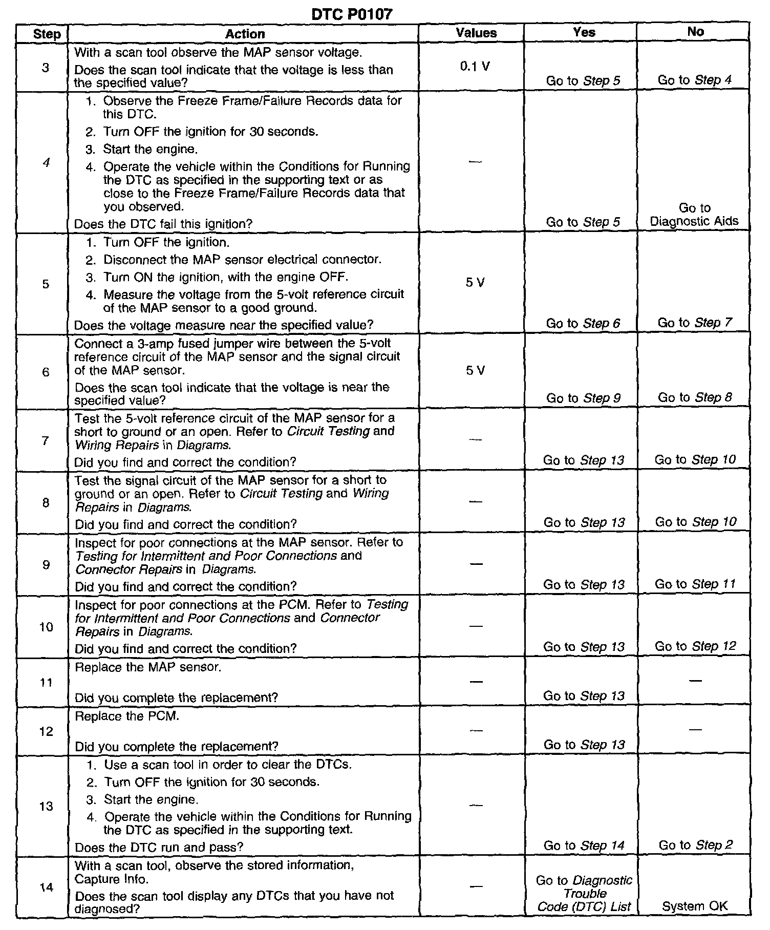 If the PCM detects a MAP sensor signal voltage that is excessively low, Diagnostic Trouble Code (DTC) P0107 will set.