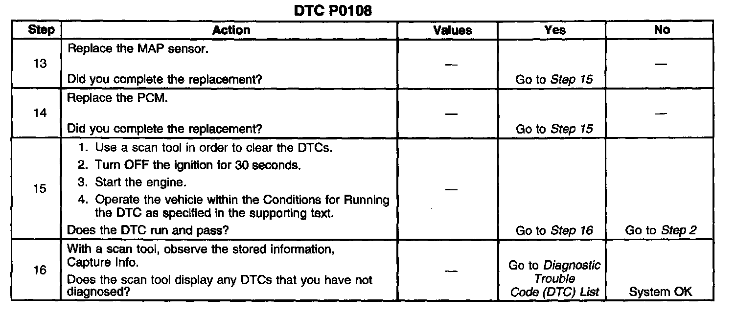 If the PCM detects a MAP sensor signal voltage that is excessively high, Diagnostic Trouble Code (DTC) P0108 sets.