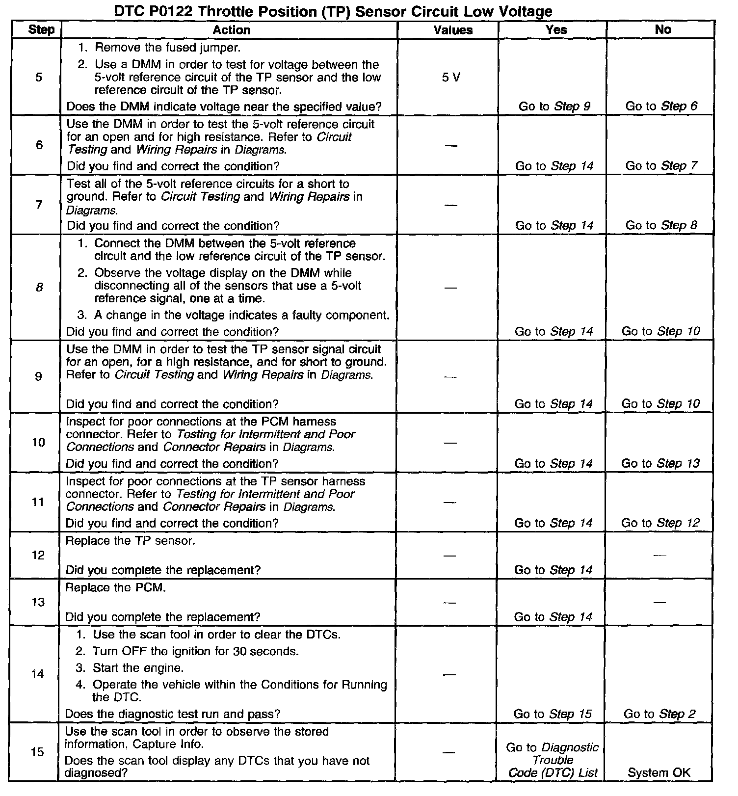 8. Any incorrectly operating components that share the 5-volt reference circuit with the TP sensor could cause a low voltage condition on this circuit.