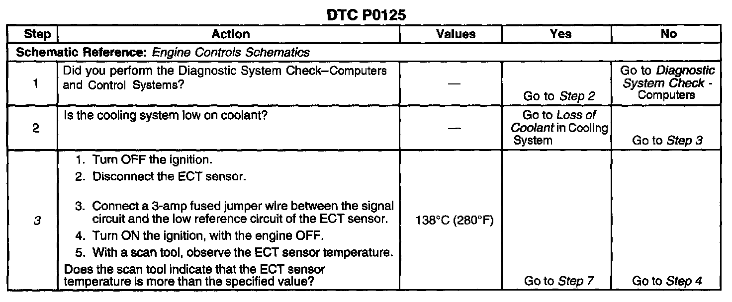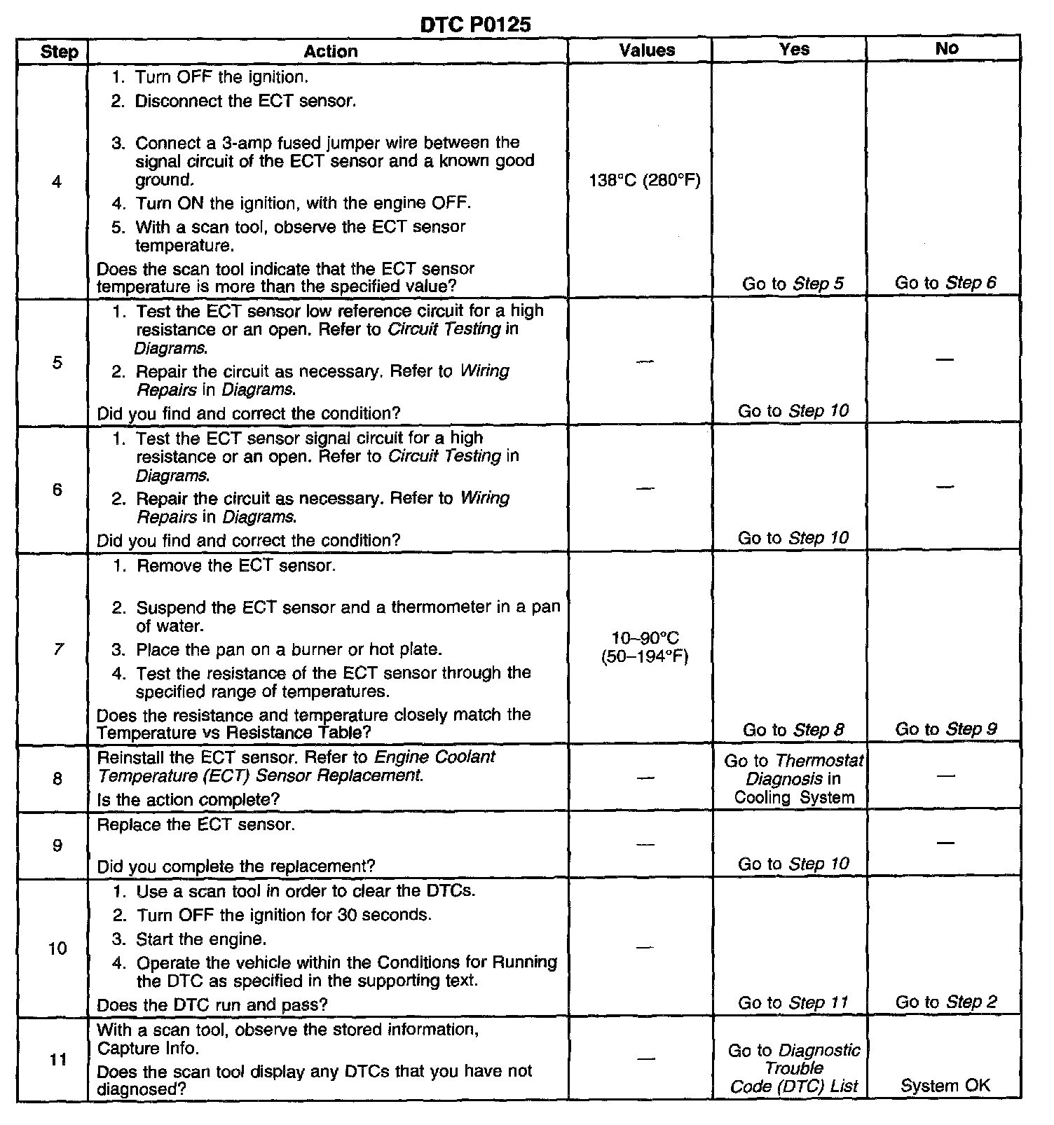 DTC P0125 is designed to detect a skewed ECT sensor or a faulty thermostat.