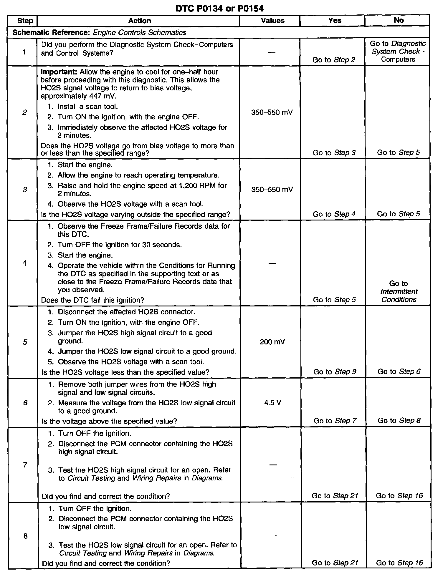 3. If the HO2S voltage is varying outside the specified range, the condition is not present.