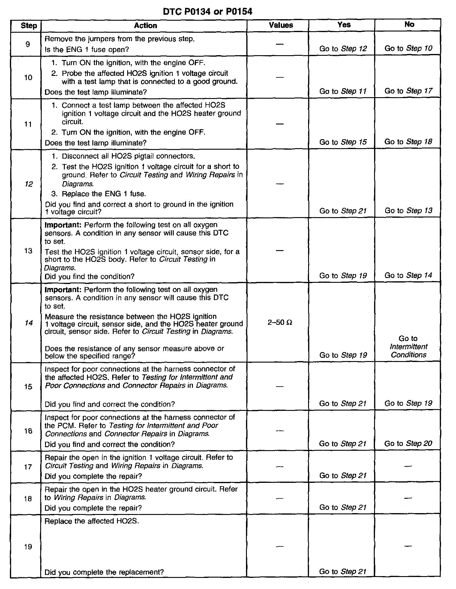 14. Resistance within the specified range indicates the HO2S heater is OK.