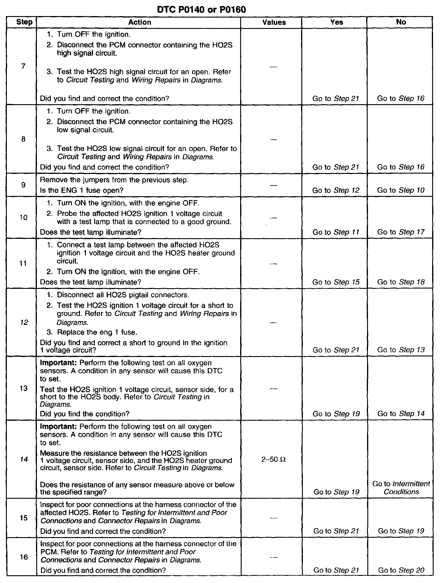 ^ An oxygen supply inside the HO2S is necessary for proper operation. The HO2S wires provides the supply of oxygen. Inspect the HO2S wires and connections for breaks or contamination. Refer to Heated Oxygen Sensor (HO2S) Wiring Repairs in Diagrams.