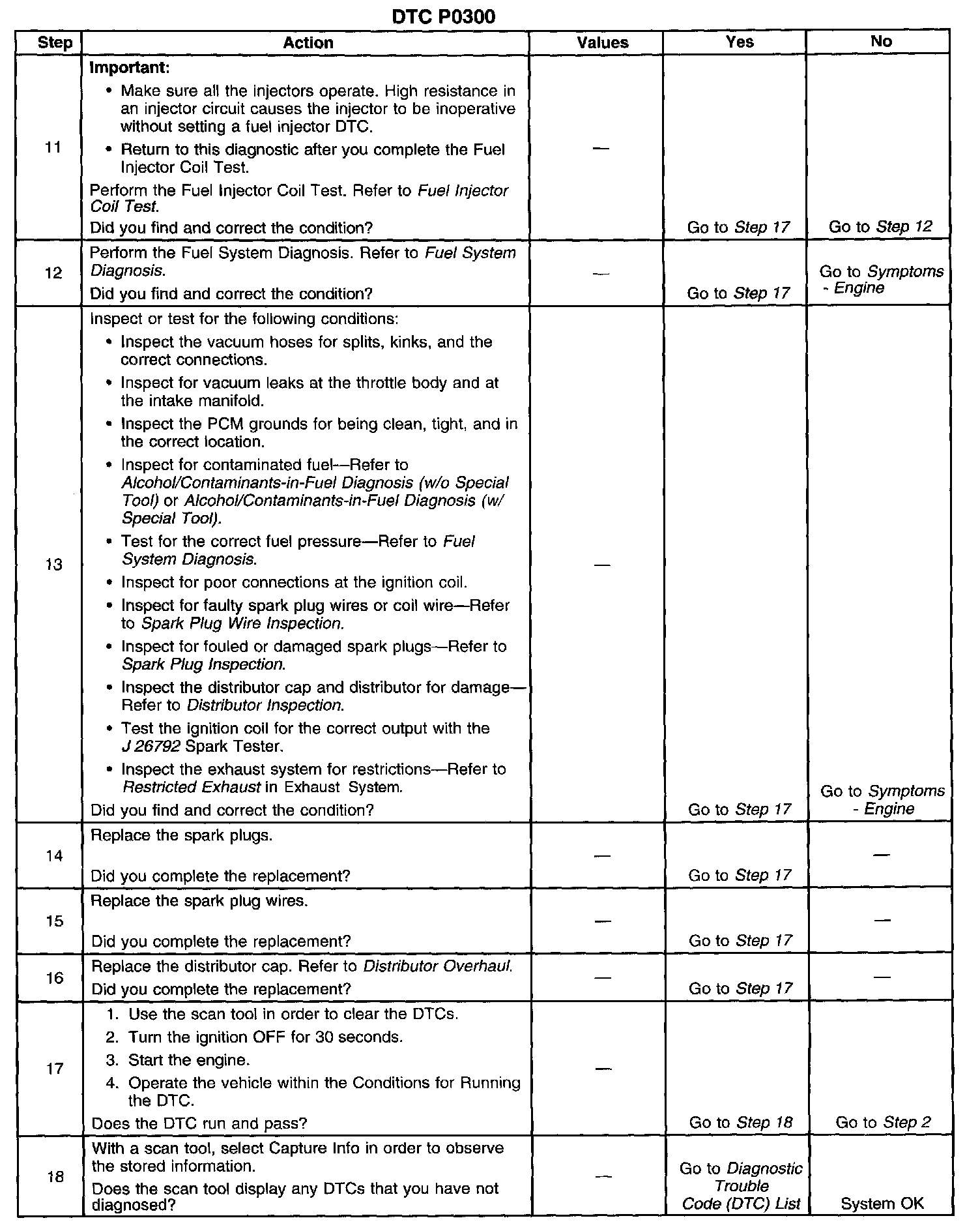 The numbers below refer to the step numbers on the diagnostic table.