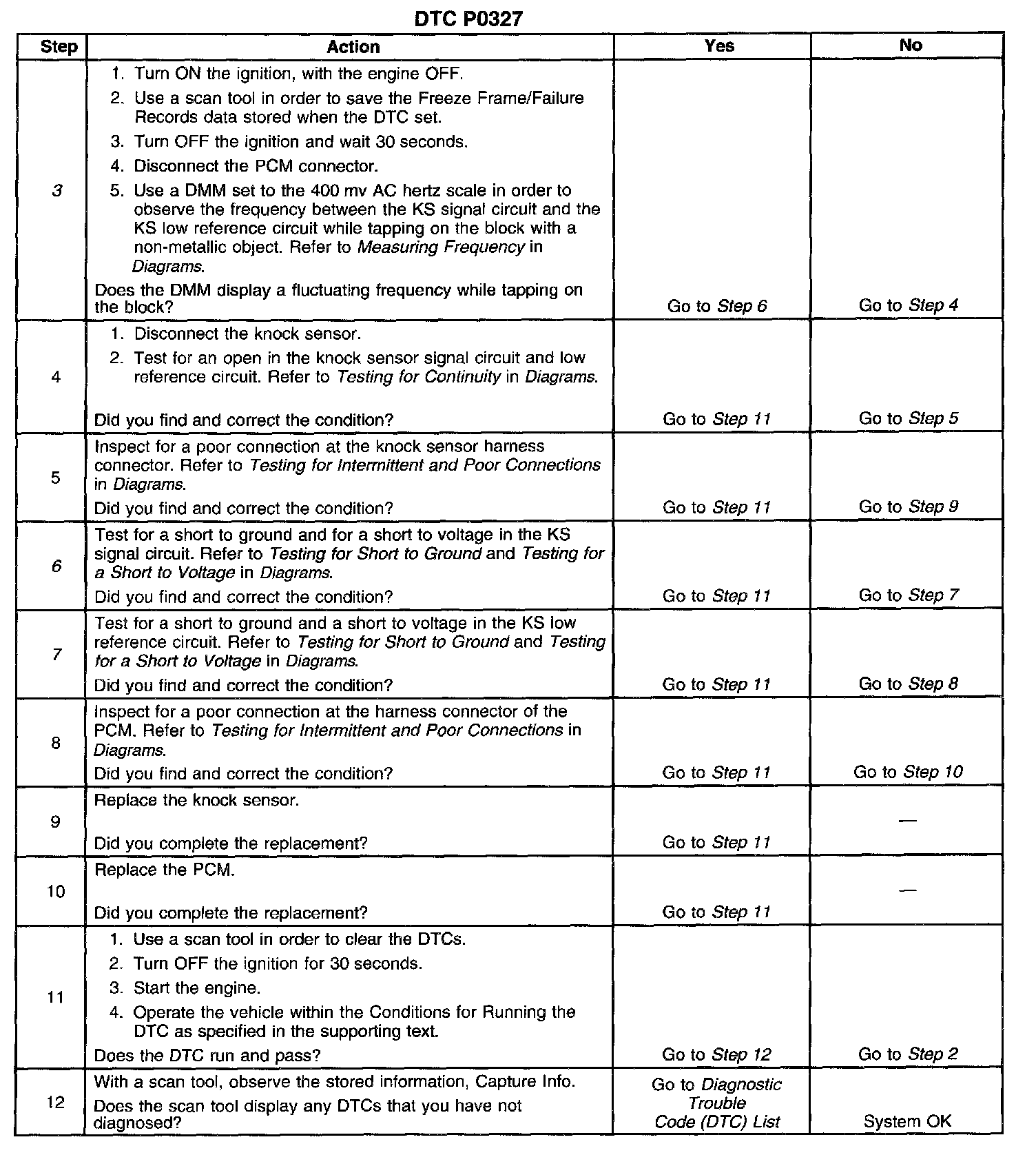 7. If the KS low reference is shorted to ground or shorted to voltage the knock sensor may still produce a signal.