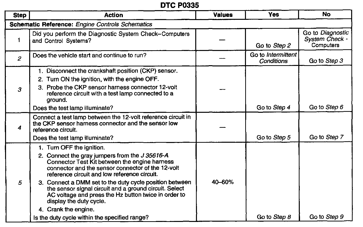 5. This step checks the crankshaft position sensor.