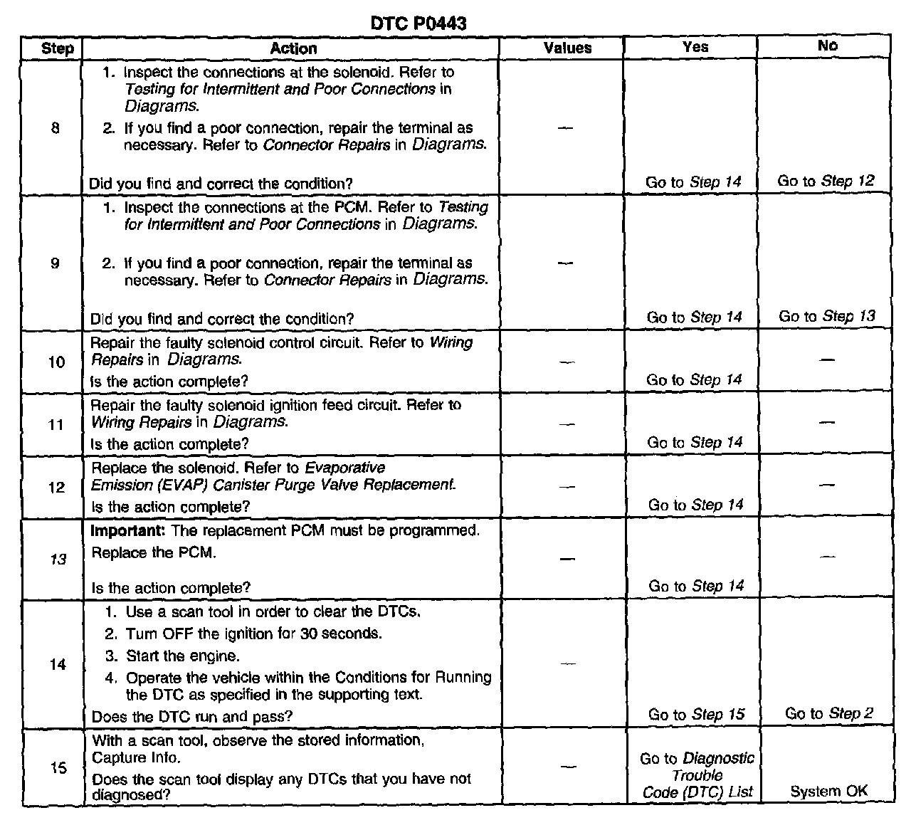 13. If no problems are found in the control circuit or the connection at the PCM, the PCM may be faulty, however, this is an extremely unlikely failure.