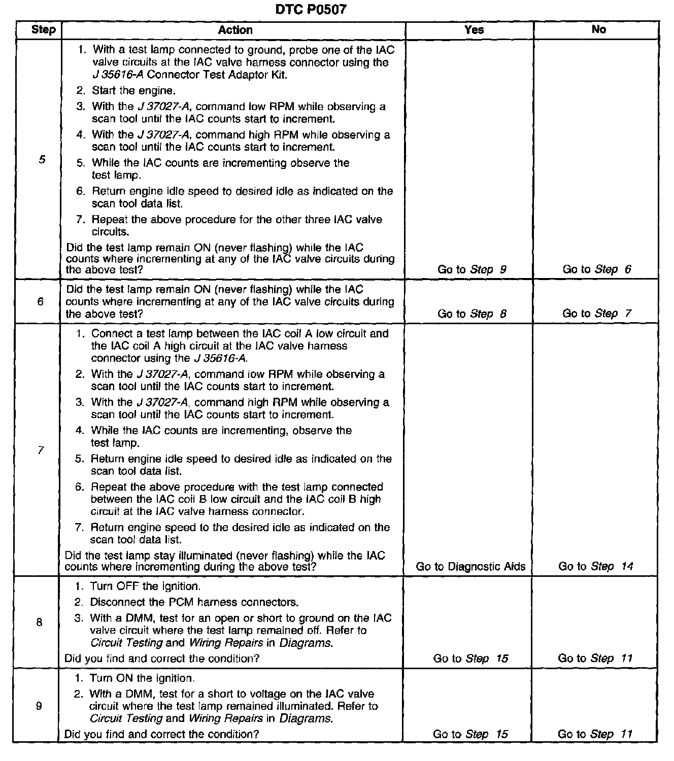 5. This test will determine the ability of the engine controller and IAC valve circuits to control the IAC valve.