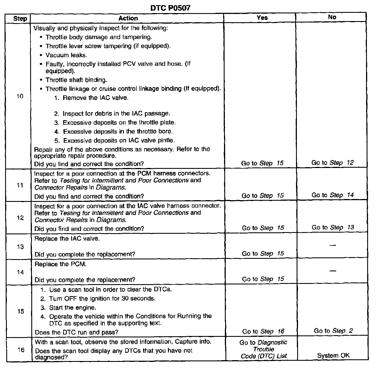 ^ DTCs P0101, P0102, P0103, P0106, P0107, P0108, P0112, P0113, P0117, P0118, P0121, P0122, P0123, P0125, P0128, P0171, P0172, P0174, P0175, P0200, P0300, P0401, P0404, P0405, P0440, P0442, P0443, P0446, P0449, P1111, P1112, P1114, P1115, P1121 P1122, P1380, P1381, P1404, or P1441 are not set.
