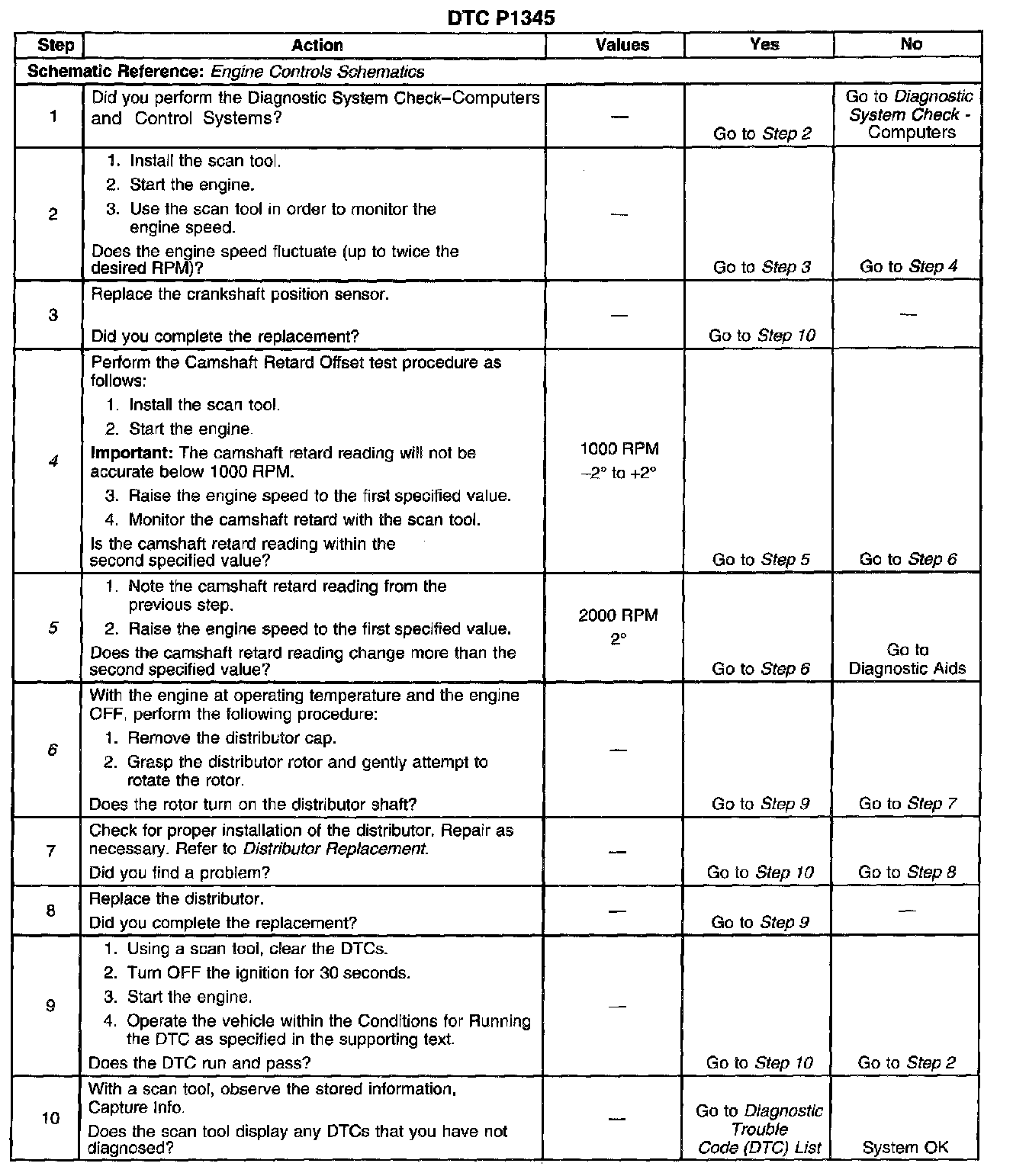 CIRCUIT DESCRIPTIONThis Diagnostic Trouble Code (DTC) monitors the Crankshaft Position (CKP) and the Camshaft Position (CMP) signals to determine if they are synchronized. If both signals are not observed by the control module within a narrow time window, the Powertrain Control Module (PCM) will determine that an error has occurred.