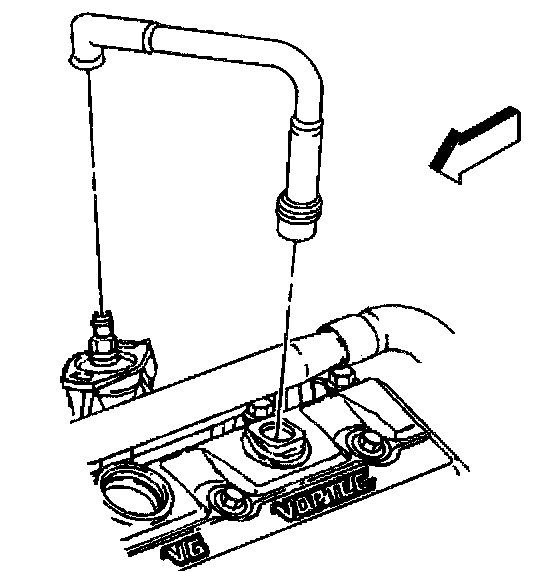 2. Remove the PCV valve and hose assembly from the valve rocker arm cover and the intake manifold.
