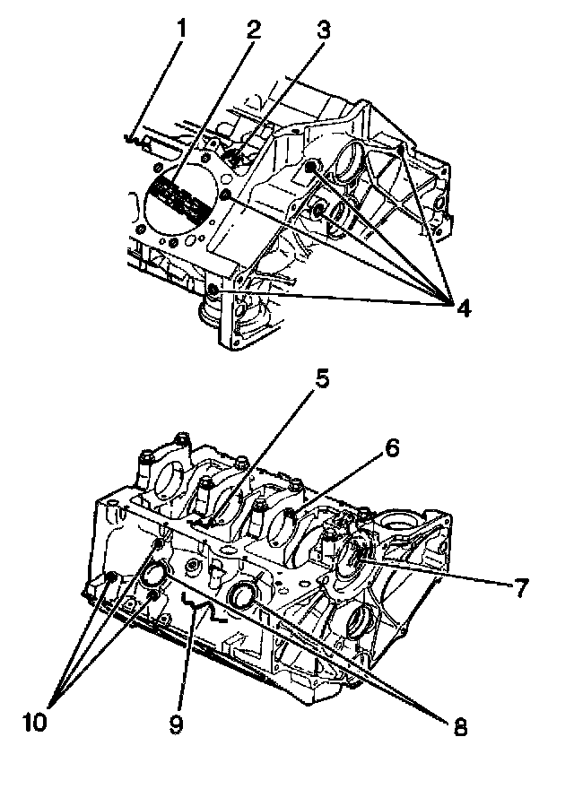 Notice: Clean all dirt, debris, and coolant from the engine block cylinder head bolt holes. Failure to remove all foreign material may result in damaged threads, improperly tightened fasteners or damage to components.