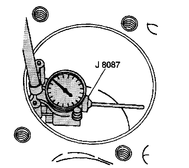 10.2. Center the J 8087 in the cylinder bore and turn the indicator dial to 0.