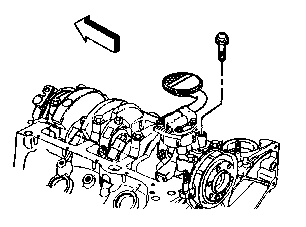 4. Install the oil pump bolt attaching the oil pump to the rear crankshaft bearing cap.