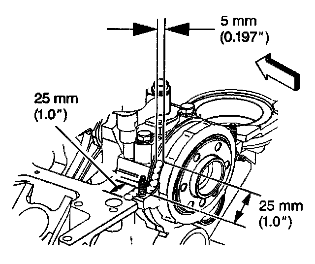 9. Measure the clearance between the 3 oil pan-to-transmission housing measurement points in order to ensure proper alignment.