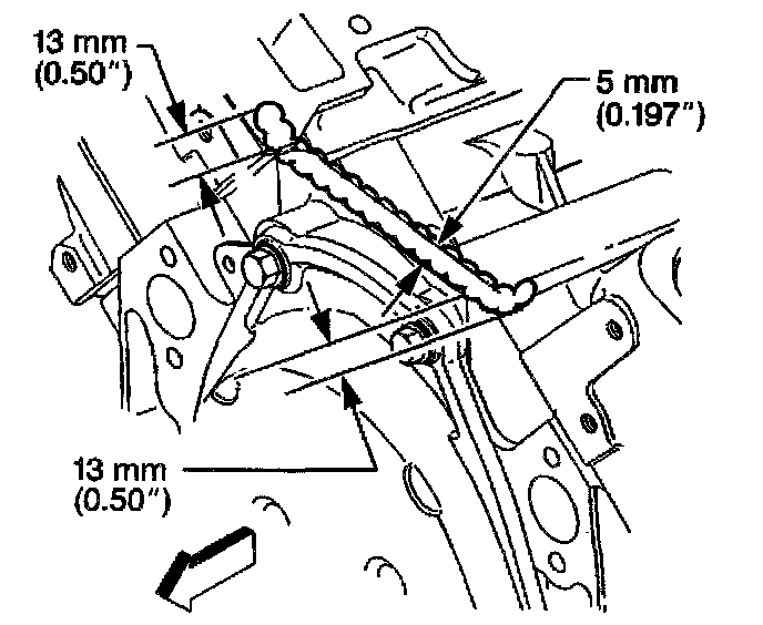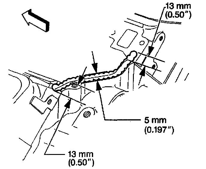 4. Extend the adhesive bead 13 mm (0.50 inch) onto each lower intake manifold gasket.