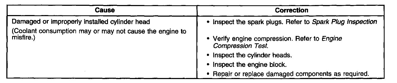 Base Engine Misfire With Coolant Consumption