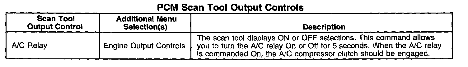 Scan Tool Output Controls - Powertrain Control Module (PCM)