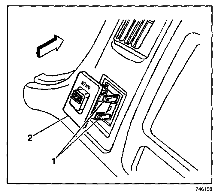 1. Align the fog lamp switch (2) to the IP trim-plate bezel. Press into place.