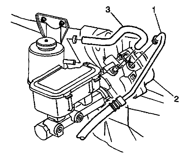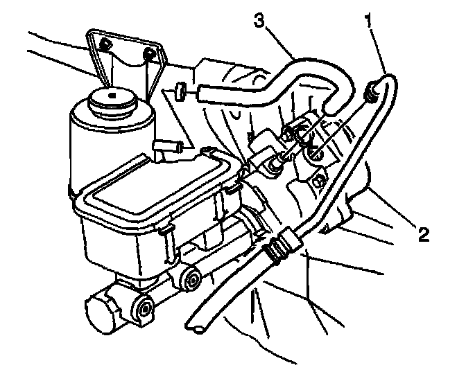 3. Remove the reservoir inlet hose (3) from the brake booster (2).