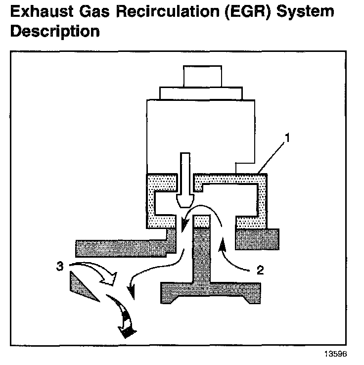 Output messages are then sent to the EGR system indicating the proper amount of exhaust gas (2) recirculation, with intake air (3), necessary in order to lower the combustion temperatures. This electronic metering of exhaust gas is 10 times faster than the vacuum-operated models as well as an improved diagnostic capabilities.