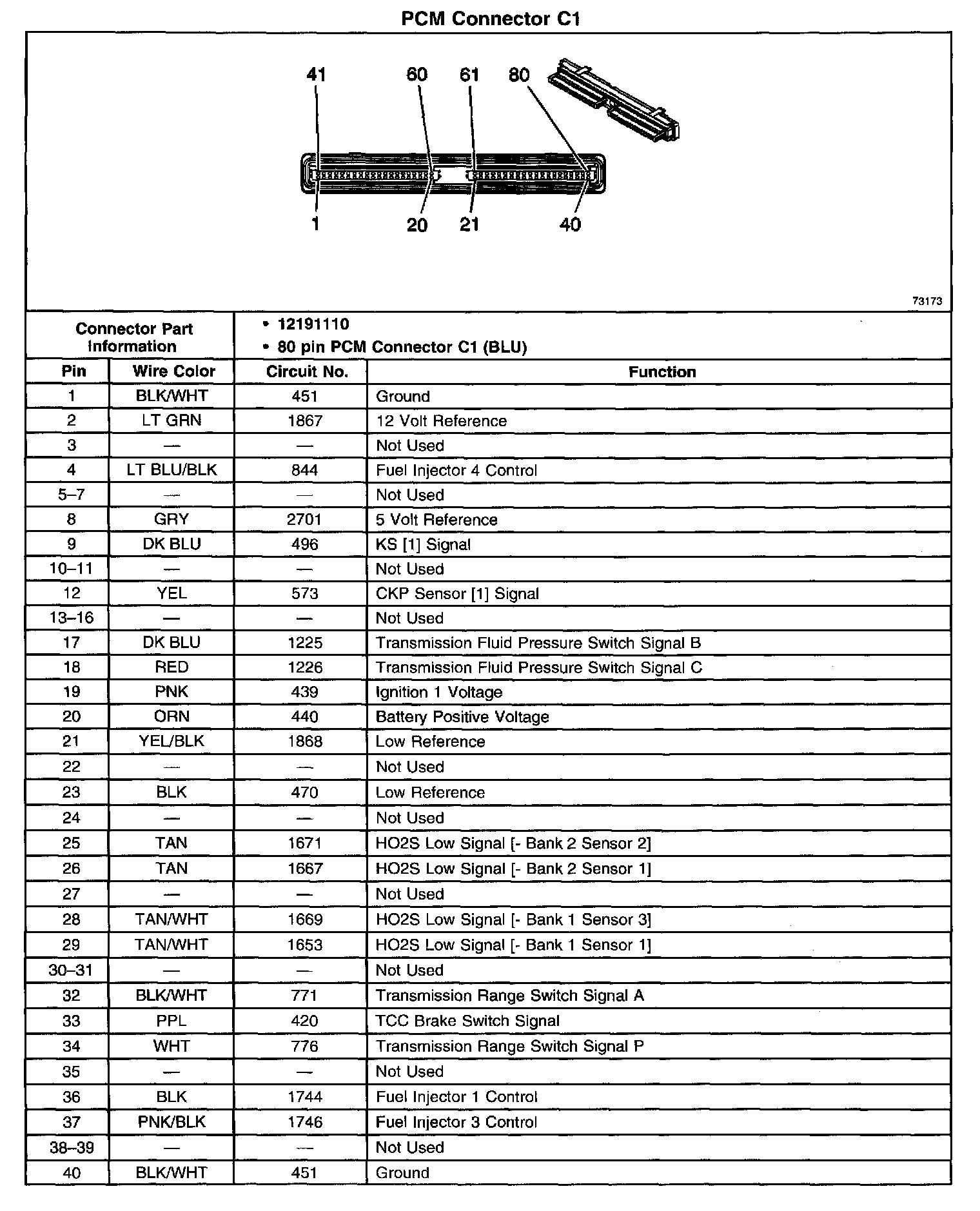 PCM Connector C1 (Part 1 Of 2):
