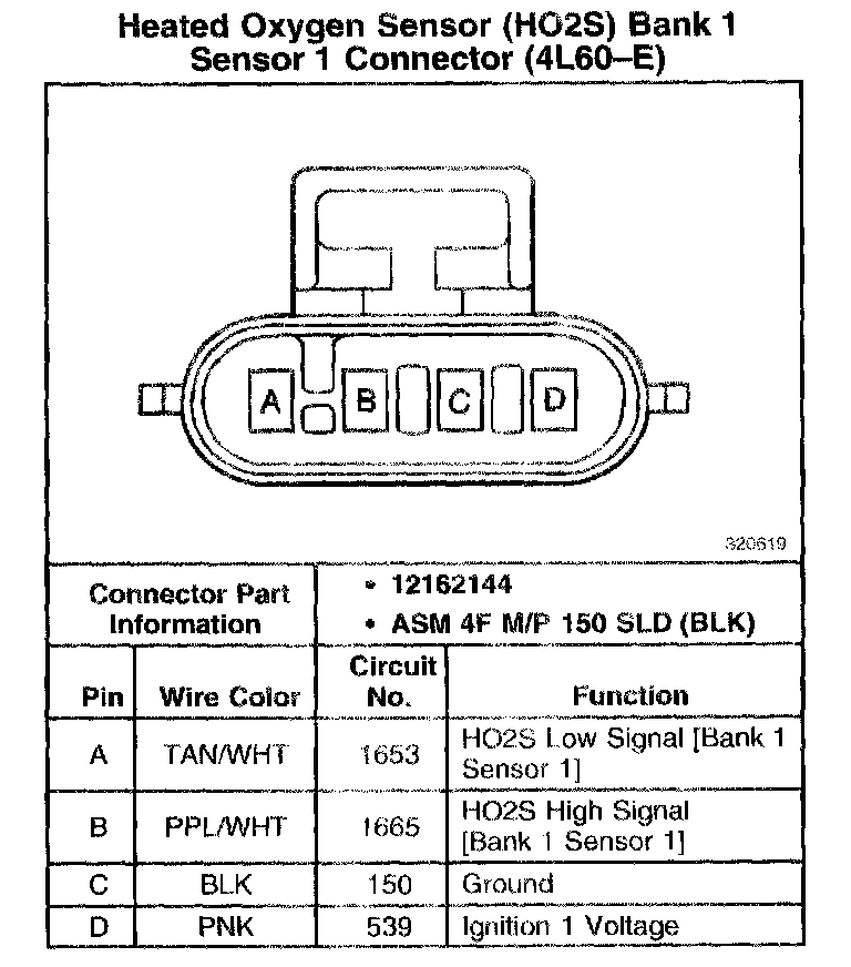 Heated Oxygen Sensor (H2OS) Bank 1 Sensor 1 Connector (4L60-E):