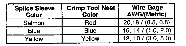 5. Select the proper splice sleeve (2) and the required crimp nest tool, refer to the Crimp and Seal Splice Table.