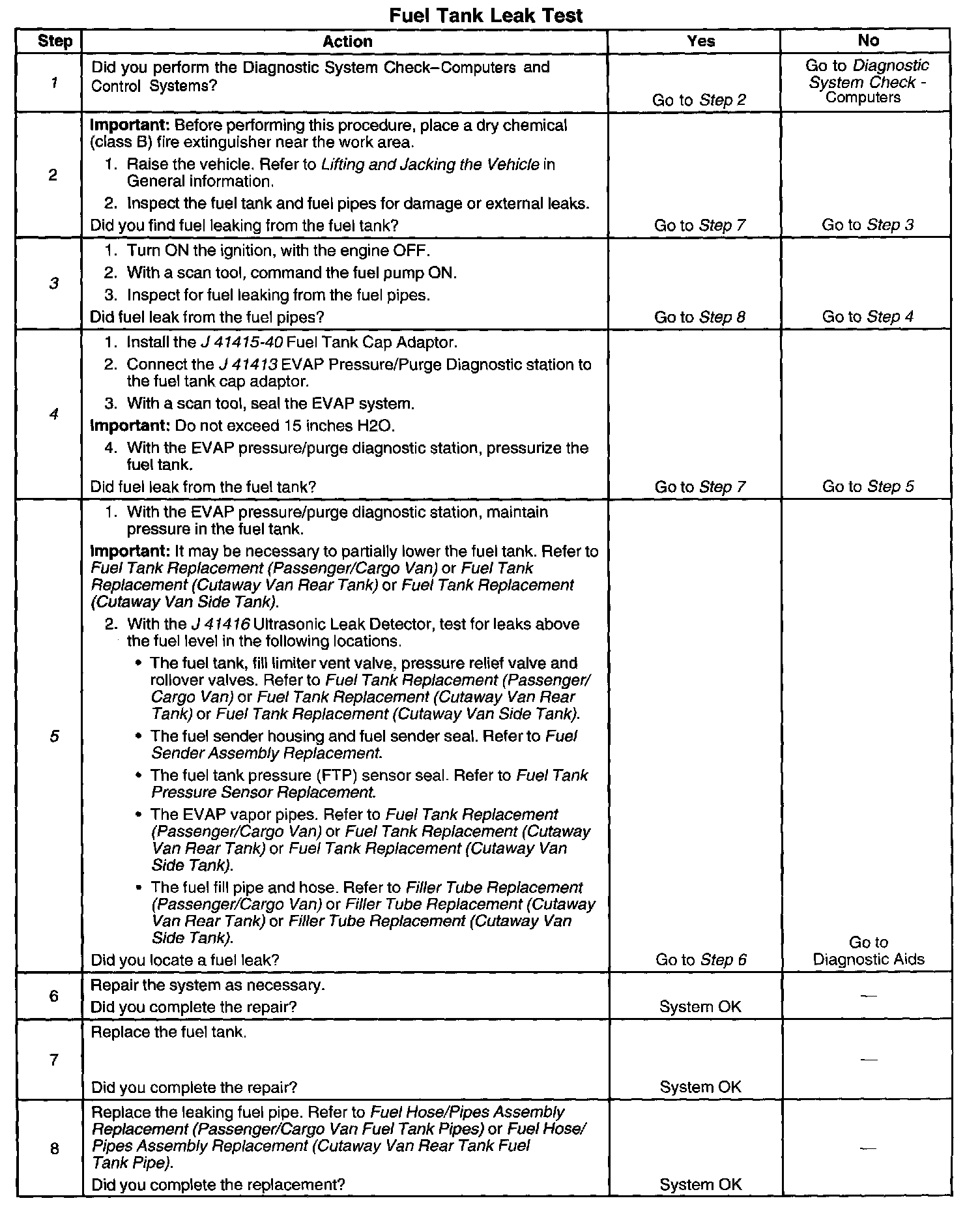 ^ Test for fuel vapor leaks in the following locations: