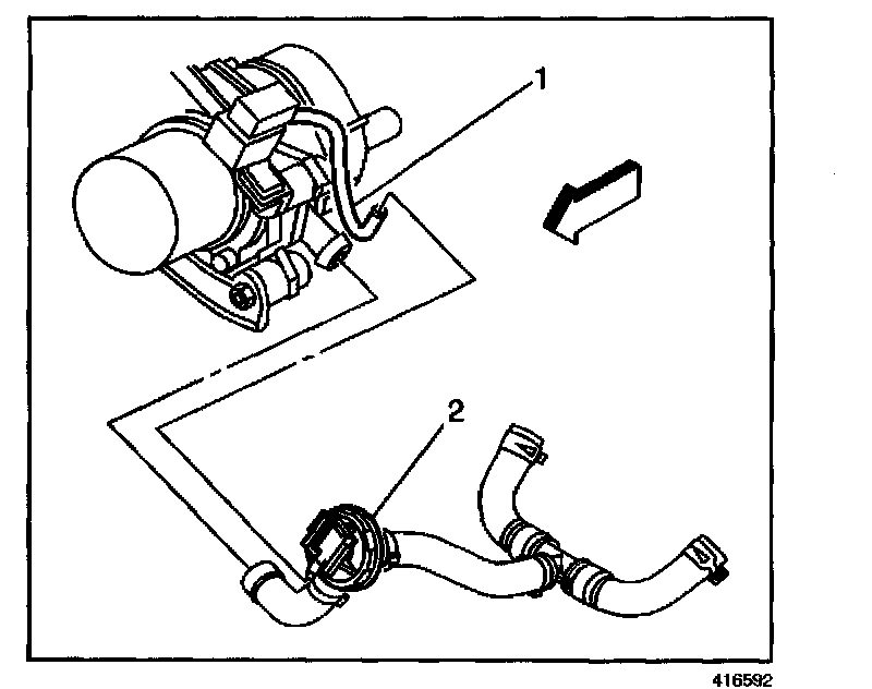 7. Disconnect the vacuum hose (1) from the shut-off valve (2).