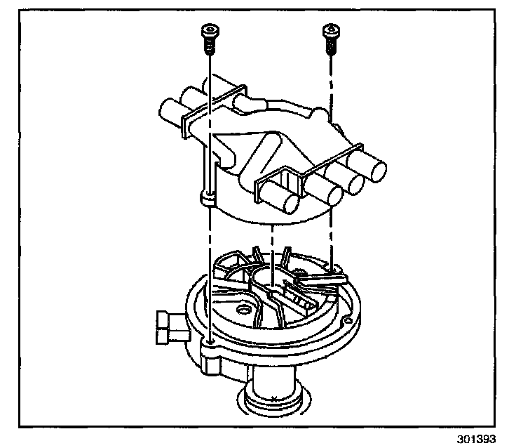 7. Remove the 2 screws that retain the distributor cap to the housing.