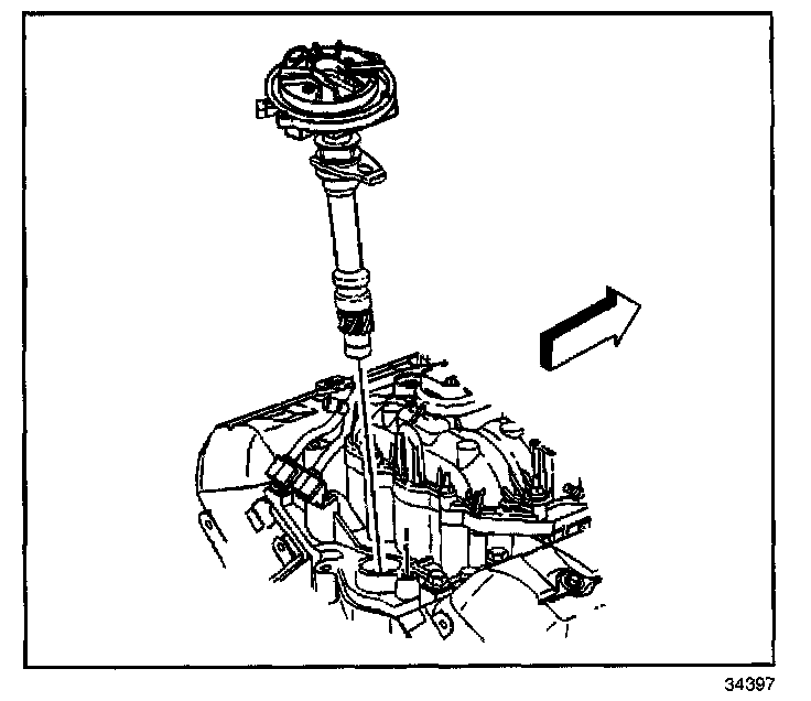 NOTE: The ignition system distributor driven gear and rotor may be installed in multiple positions. In order to avoid mistakes, mark the distributor on the following components in order to ensure the same mounting position upon reassembly: