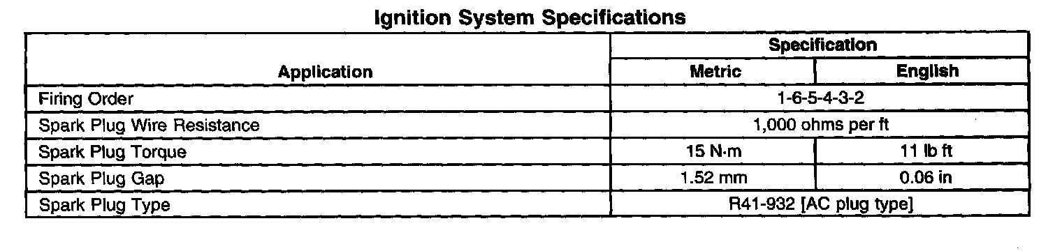 Ignition System Specifications: