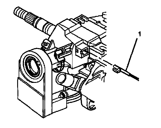 - Press the locking tab on the end of the park lock cable assembly (1) into the slot in the lock module assembly.