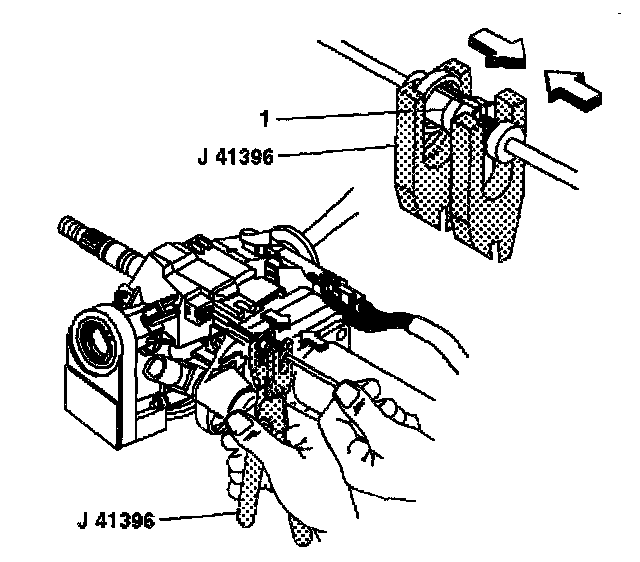 16.3. Unlock the adjuster ring (1) on the park lock cable assembly with J 41396.