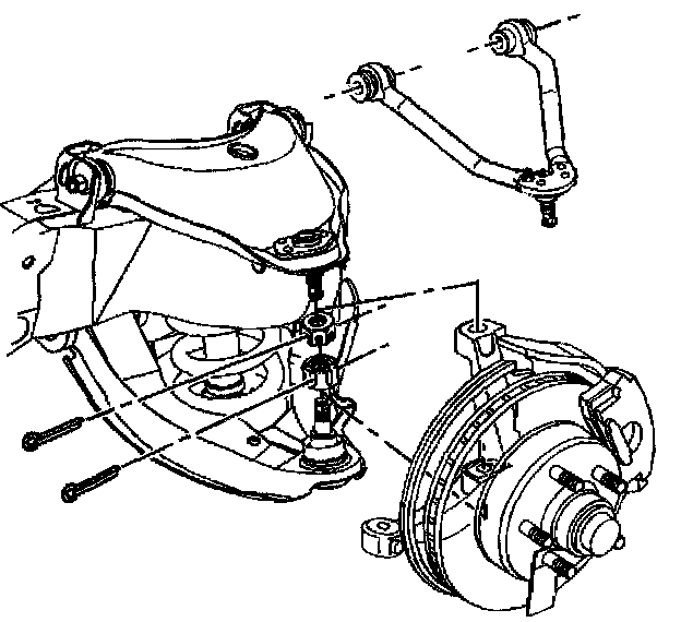 7. Install the wheel speed sensor harness/brake hose bracket to the upper control arm with the nut and bolt.