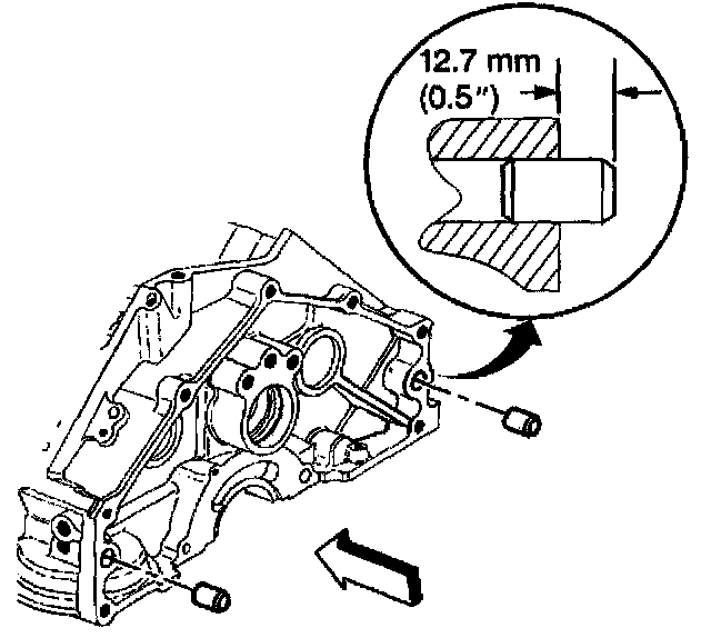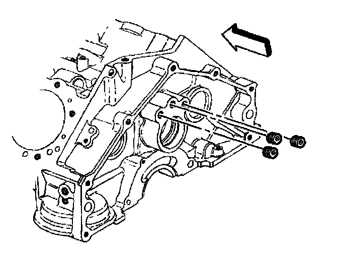 8. Remove the engine block oil gallery plugs from the front of the engine block and discard.