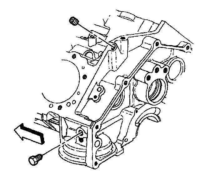 7. Remove the left side rear and left rear top engine block oil gallery plugs.
