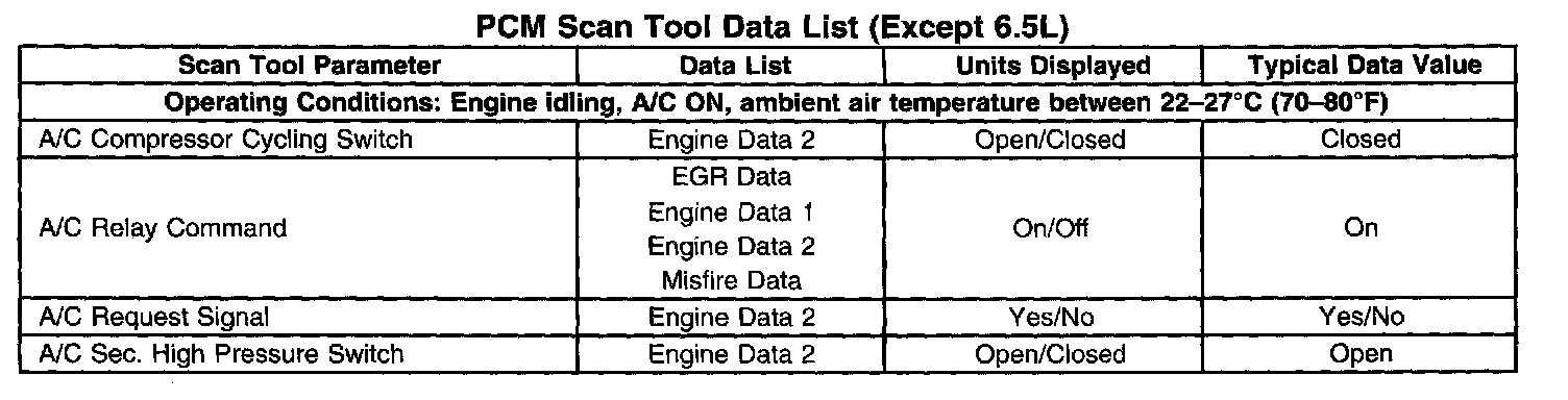 Scan Tool Data List - Powertrain Control Module (PCM)
