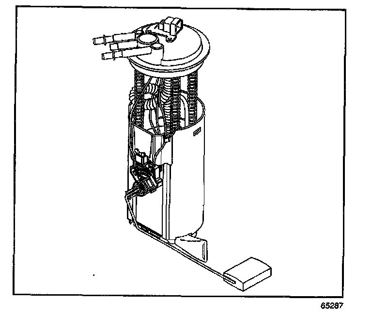 6. Remove the fuel tank pressure sensor (1) from the fuel modular sender (2).