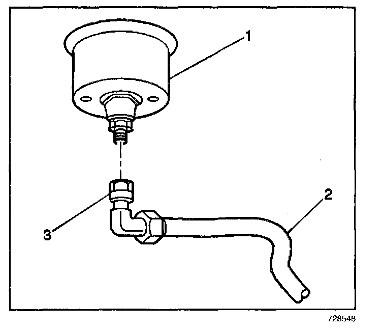 7. Install the fill line fitting (3) to the fill valve using a new O-ring. Lubricate the O-ring with petroleum jelly or equivalent before installation.